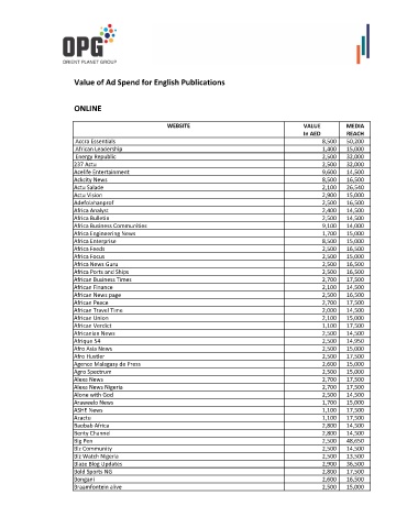 Value of Ad Spend for English Publications