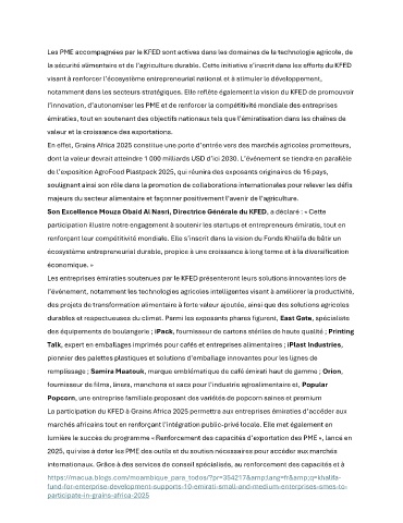 La participation du KFED à Grains Africa 2025 permettra aux entreprises émiraties d’accéder aux
