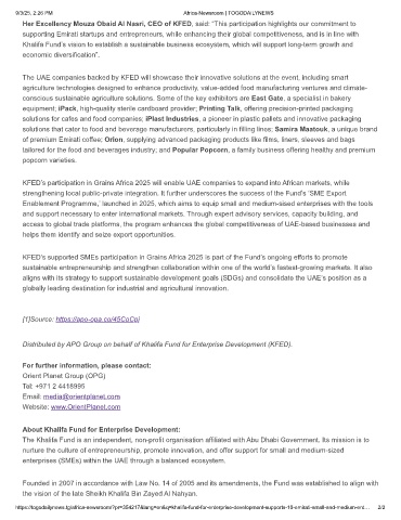 KFED’s participation in Grains Africa 2025 will enable UAE companies to expand into African markets, while