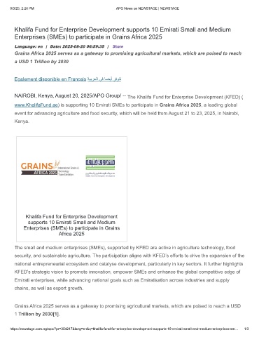www.KhalifaFund.ae) is supporting 10 Emirati SMEs to participate in Grains Africa 2025, a leading global
