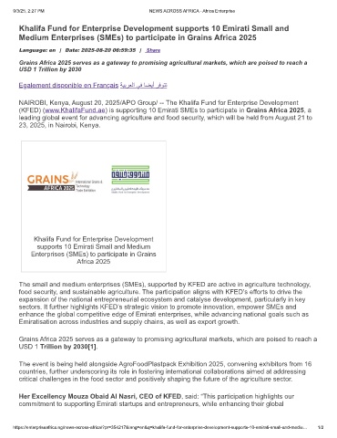 (KFED) (www.KhalifaFund.ae) is supporting 10 Emirati SMEs to participate in Grains Africa 2025, a