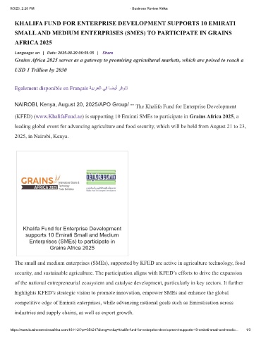(KFED) (www.KhalifaFund.ae) is supporting 10 Emirati SMEs to participate in Grains Africa 2025, a
