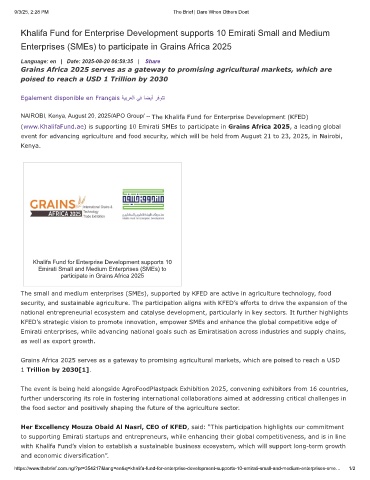 (www.KhalifaFund.ae) is supporting 10 Emirati SMEs to participate in Grains Africa 2025, a leading global
