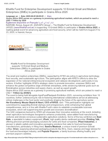 (KFED) (www.KhalifaFund.ae) is supporting 10 Emirati SMEs to participate in Grains Africa 2025, a