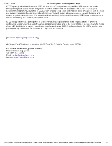 KFED’s participation in Grains Africa 2025 will enable UAE companies to expand into African markets, while