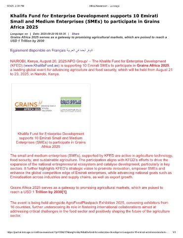 (KFED) (www.KhalifaFund.ae) is supporting 10 Emirati SMEs to participate in Grains Africa 2025,
