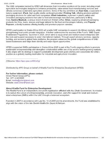 KFED’s participation in Grains Africa 2025 will enable UAE companies to expand into African markets, while