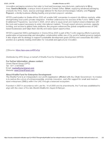 KFED’s participation in Grains Africa 2025 will enable UAE companies to expand into African markets, while
