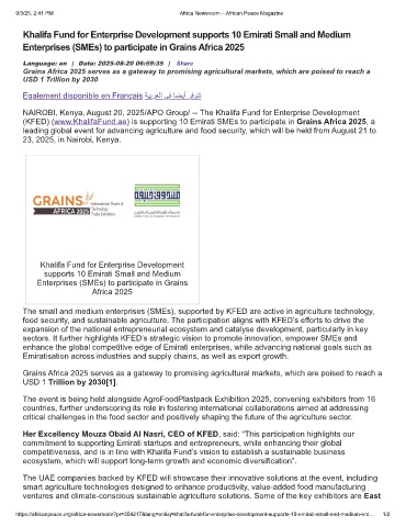 (KFED) (www.KhalifaFund.ae) is supporting 10 Emirati SMEs to participate in Grains Africa 2025, a