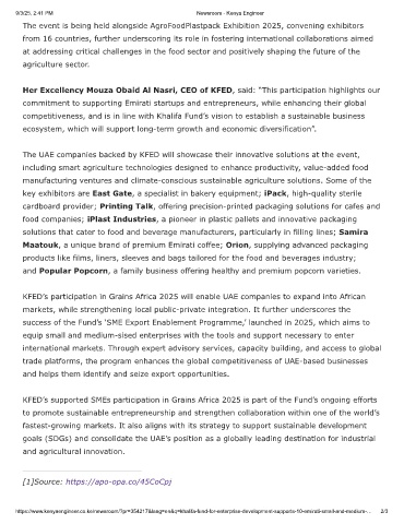 KFED’s participation in Grains Africa 2025 will enable UAE companies to expand into African