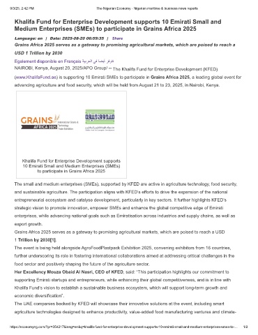 (www.KhalifaFund.ae) is supporting 10 Emirati SMEs to participate in Grains Africa 2025, a leading global event for