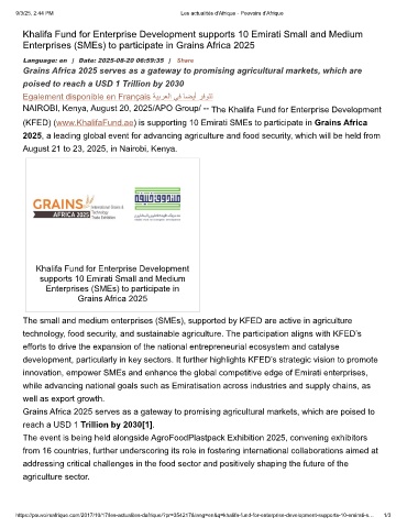 (KFED) (www.KhalifaFund.ae) is supporting 10 Emirati SMEs to participate in Grains Africa