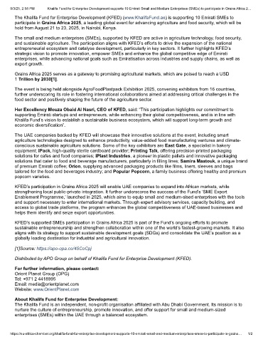 9/3/25, 2:58 PM Khalifa Fund for Enterprise Development supports 10 Emirati Small and Medium Enterprises (SMEs) to participate in Grains Africa 2…