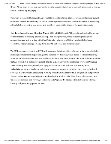 9/3/25, 2:59 PM Khalifa Fund for Enterprise Development supports 10 Emirati Small and Medium Enterprises (SMEs) to participate in Grains Africa 2…