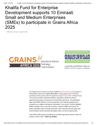 9/3/25, 3:00 PM Khalifa Fund for Enterprise Development supports 10 Emiraati Small and Medium Enterprises (SMEs) to participate in Grains Africa …