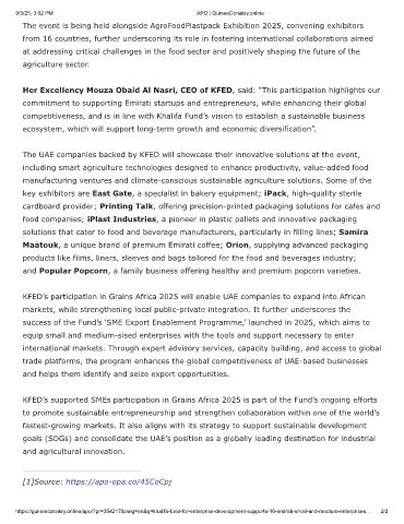 KFED’s participation in Grains Africa 2025 will enable UAE companies to expand into African