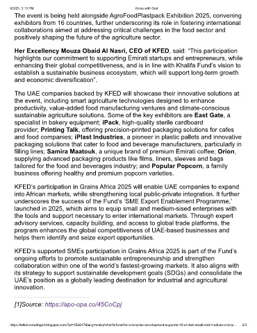 KFED’s participation in Grains Africa 2025 will enable UAE companies to expand