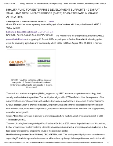 (www.KhalifaFund.ae) is supporting 10 Emirati SMEs to participate in Grains Africa 2025, a leading global