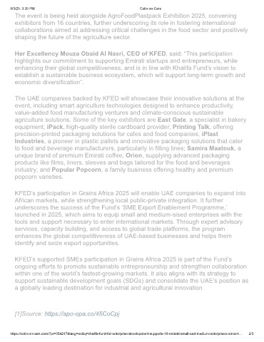 KFED’s participation in Grains Africa 2025 will enable UAE companies to expand into