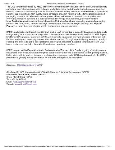 KFED’s participation in Grains Africa 2025 will enable UAE companies to expand into African markets, while