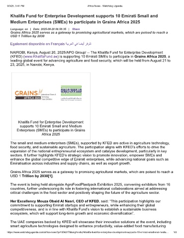 (KFED) (www.KhalifaFund.ae) is supporting 10 Emirati SMEs to participate in Grains Africa 2025, a