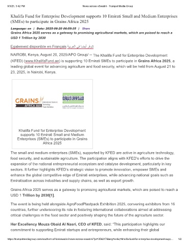 (KFED) (www.KhalifaFund.ae) is supporting 10 Emirati SMEs to participate in Grains Africa 2025, a
