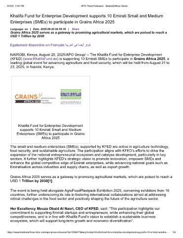(KFED) (www.KhalifaFund.ae) is supporting 10 Emirati SMEs to participate in Grains Africa 2025, a