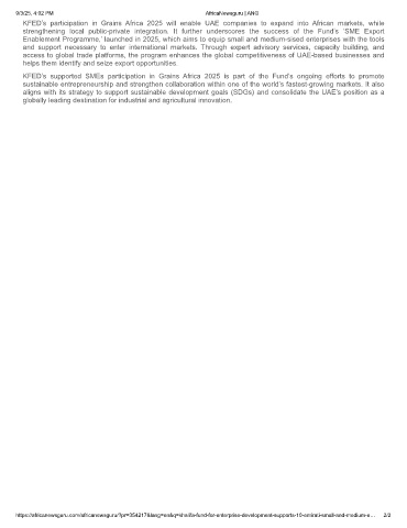 KFED’s participation in Grains Africa 2025 will enable UAE companies to expand into African markets, while