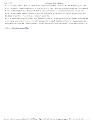 KFED’s participation in Grains Africa 2025 will enable UAE companies to expand into African markets, while strengthening local public-