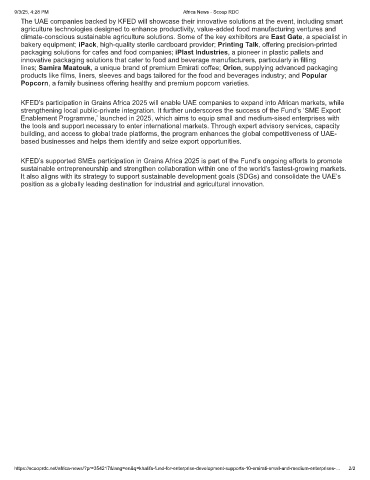 KFED’s participation in Grains Africa 2025 will enable UAE companies to expand into African markets, while