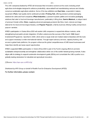 KFED’s participation in Grains Africa 2025 will enable UAE companies to expand into African markets, while