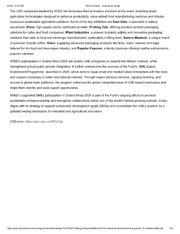 KFED’s participation in Grains Africa 2025 will enable UAE companies to expand into African markets, while