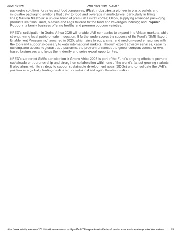 KFED’s participation in Grains Africa 2025 will enable UAE companies to expand into African markets, while