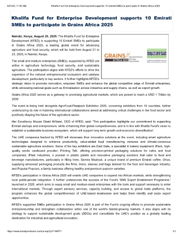 8/21/25, 11:06 AM Khalifa Fund for Enterprise Development supports 10 Emirati SMEs to participate in Grains Africa 2025