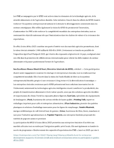 La participation du KFED à Grains Africa 2025 permettra aux entreprises émiraties d’accéder aux