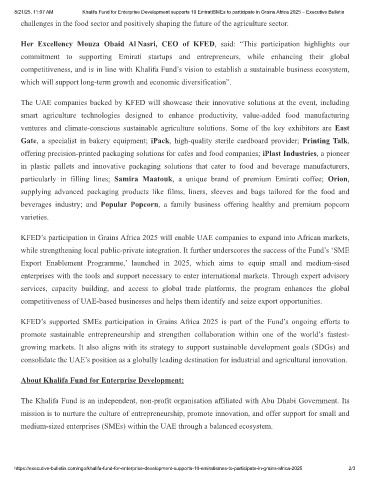 8/21/25, 11:07 AM Khalifa Fund for Enterprise Development supports 10 EmiratiSMEs to participate in Grains Africa 2025 – Executive Bulletin
