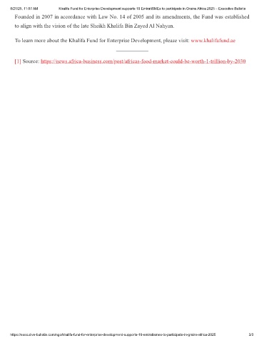 8/21/25, 11:07 AM Khalifa Fund for Enterprise Development supports 10 EmiratiSMEs to participate in Grains Africa 2025 – Executive Bulletin