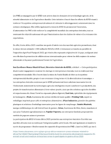 La participation du KFED à Grains Africa 2025 permettra aux entreprises émiraties d’accéder aux