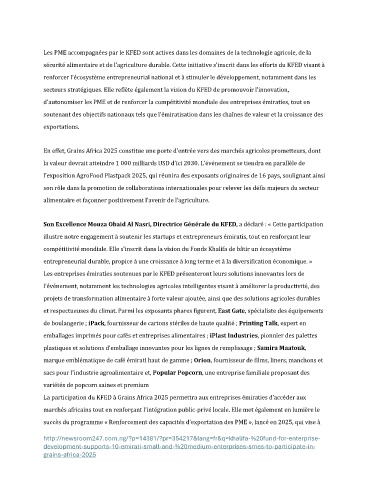 La participation du KFED à Grains Africa 2025 permettra aux entreprises émiraties d’accéder aux