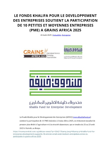 soutient la participation de 10 PME émiraties à Grains Africa 2025, un événement mondial de