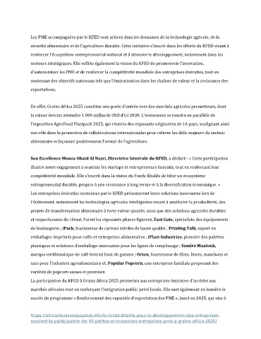La participation du KFED à Grains Africa 2025 permettra aux entreprises émiraties d’accéder aux
