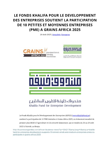 soutient la participation de 10 PME émiraties à Grains Africa 2025, un événement mondial de