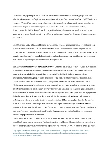 La participation du KFED à Grains Africa 2025 permettra aux entreprises émiraties d’accéder aux