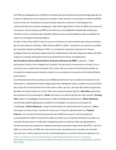 La participation du KFED à Grains Africa 2025 permettra aux entreprises émiraties d’accéder aux