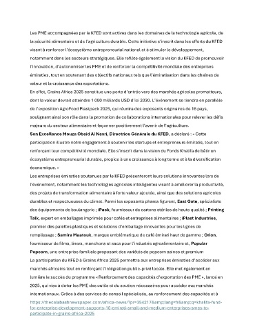 La participation du KFED à Grains Africa 2025 permettra aux entreprises émiraties d’accéder aux