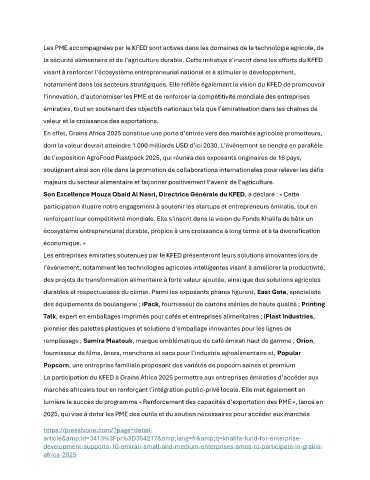 La participation du KFED à Grains Africa 2025 permettra aux entreprises émiraties d’accéder aux
