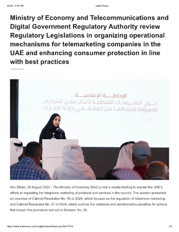 Abu Dhabi, 29 August 2024 - The Ministry of Economy (MoEc) held a media briefing to explain the UAE's