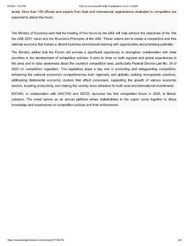 8/16/24, 1:45 PM UAE to host seventh Arab Competition Forum in 2026