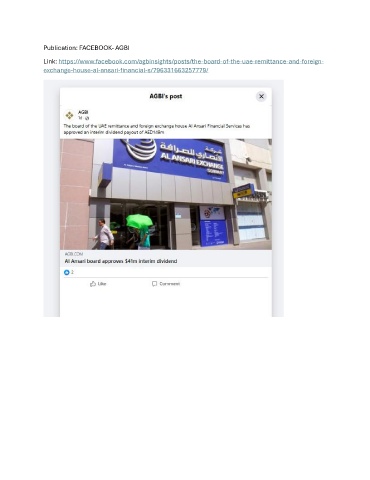 Publication: FACEBOOK- AGBI Link: https://www.facebook.com/agbinsights/posts/the-board-of-the-uae-remittance-and-foreign- exchange-house-al-ansari-financial-s/796331663257779/