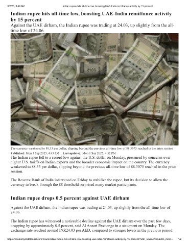 9/2/25, 9:49 AM Indian rupee hits all-time low, boosting UAE-India remittance activity by 15 percent